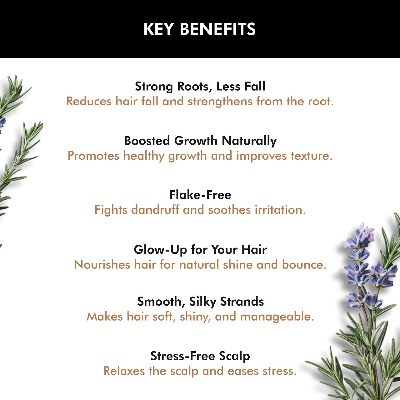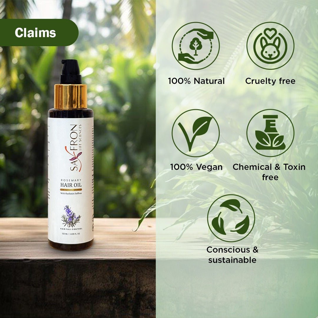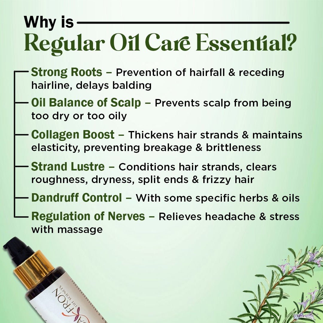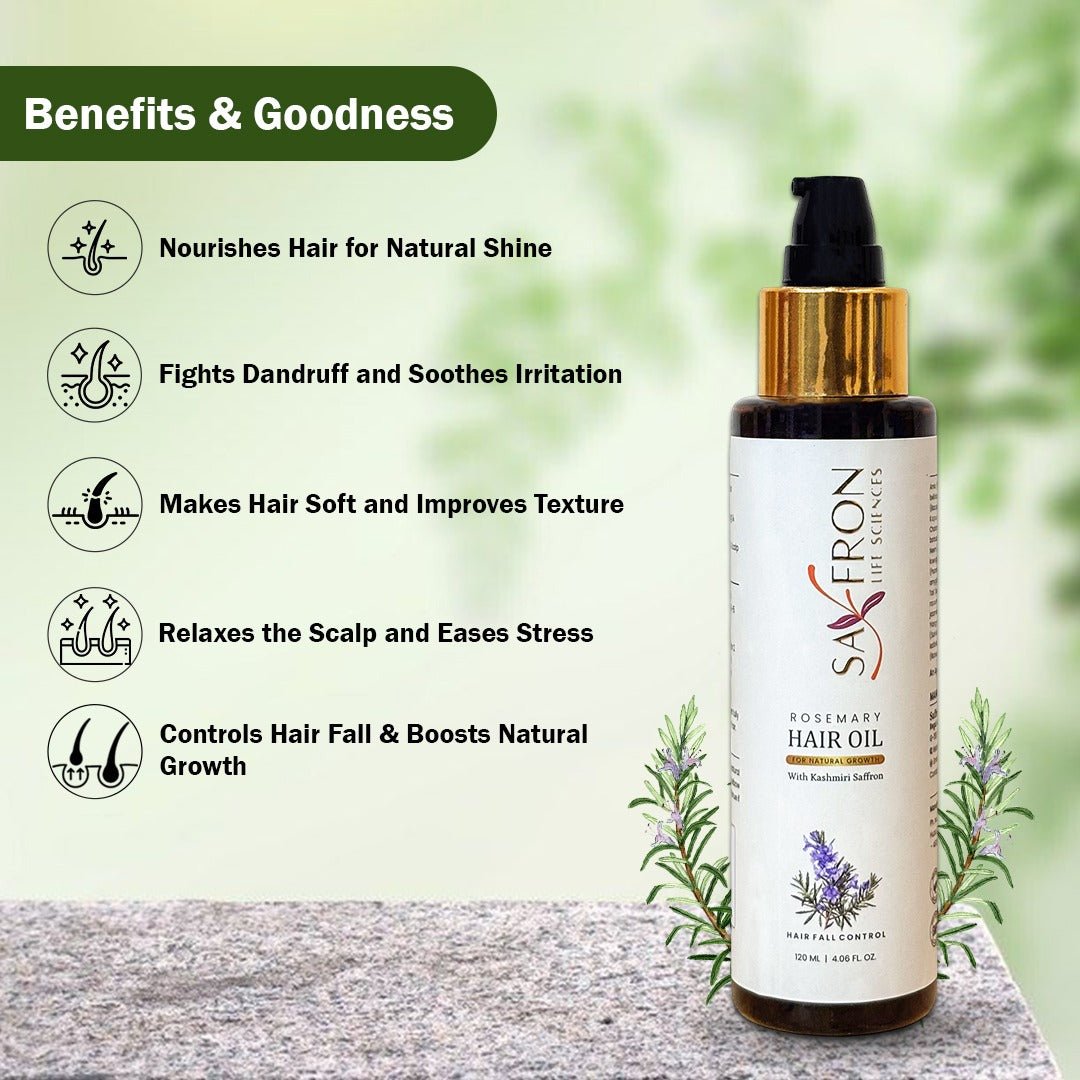 Our Rosemary Hair Oil combines rosemary with Ayurvedic herbs like Brahmi, Bhringraj, and Amla to strengthen hair, reduce hair fall, and promote healthy growth. Infused with the power of saffron, this result-oriented formula nourishes the scalp, combats dandruff, and revitalizes hair from root to tip. It leaves your hair soft, shiny, and healthy, making it ideal for daily use to reduce hair fall and improve overall hair health..