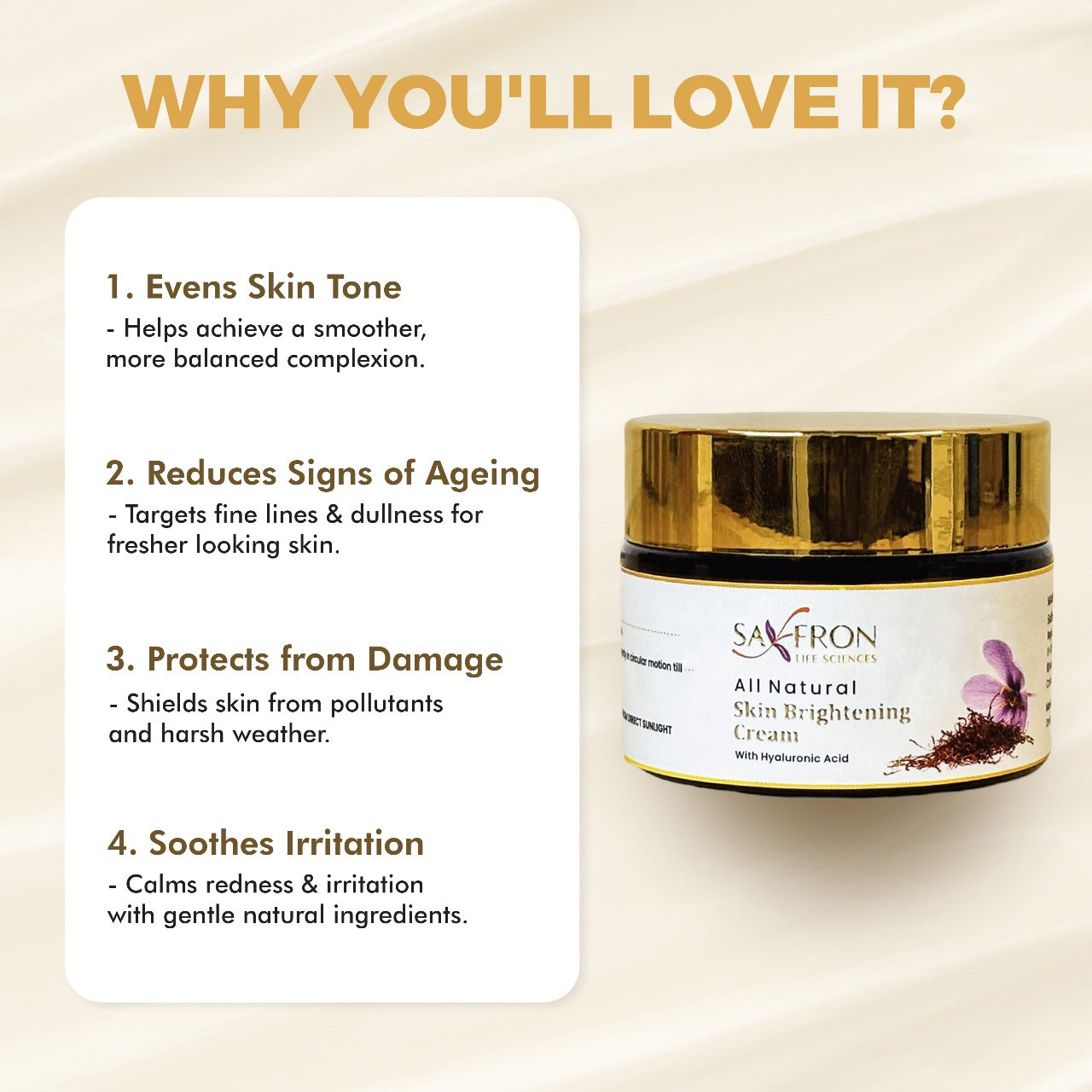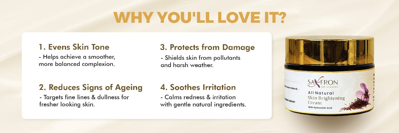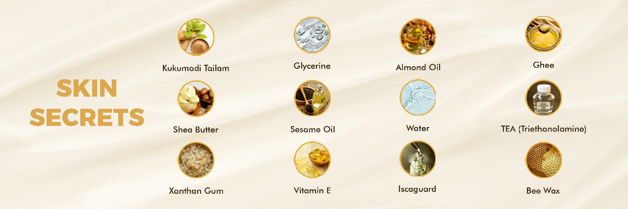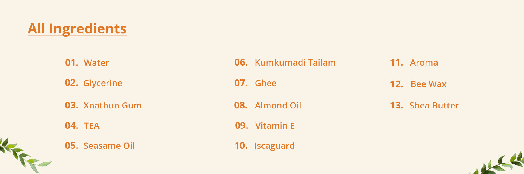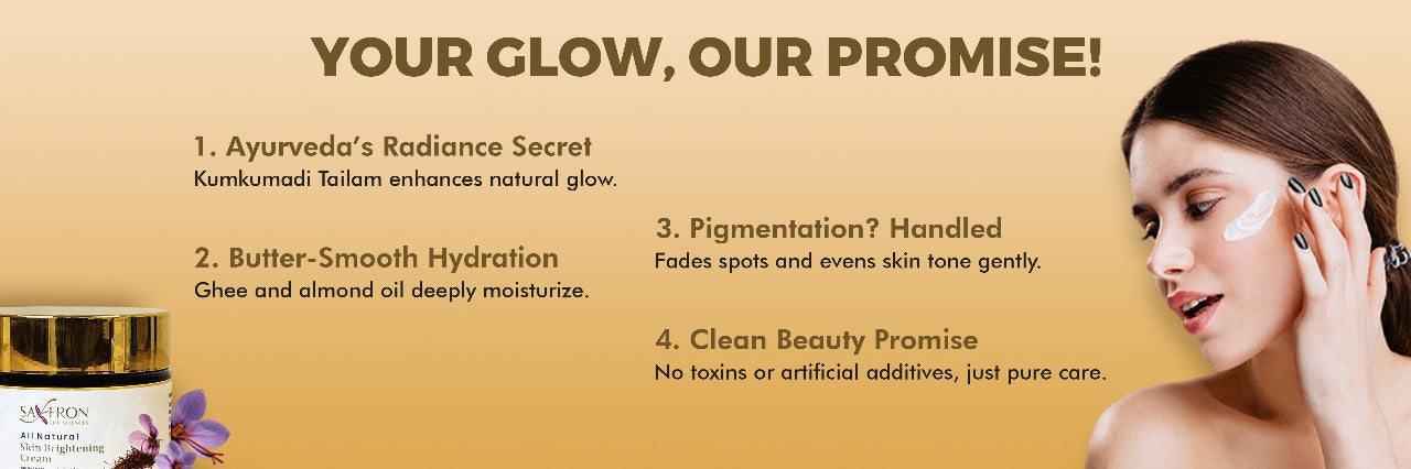 Our Skin Brightening Cream is a luxurious blend of Kumkumadi Tailam, almond oil, and ghee, designed to brighten and nourish your skin. Packed with natural ingredients like sesame oil, vitamin E, and shea butter, it hydrates, rejuvenates, and leaves your skin with a glowing, youthful radiance. Result-oriented, all-natural, and free from harmful chemicals, it’s the effective solution your skin deserves.
